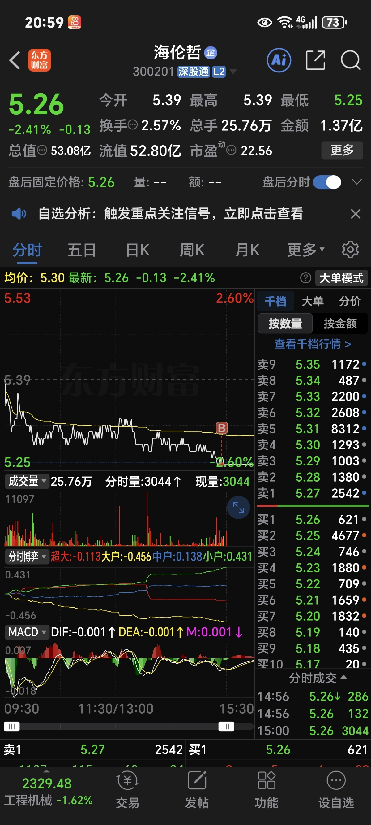 $海伦哲(SZ300201)$ 5.25元是我的心里抄底位置,所以下来了毫不犹豫的打了底仓!个人还是看好小海的,看好高空消防车未来发展趋势!
