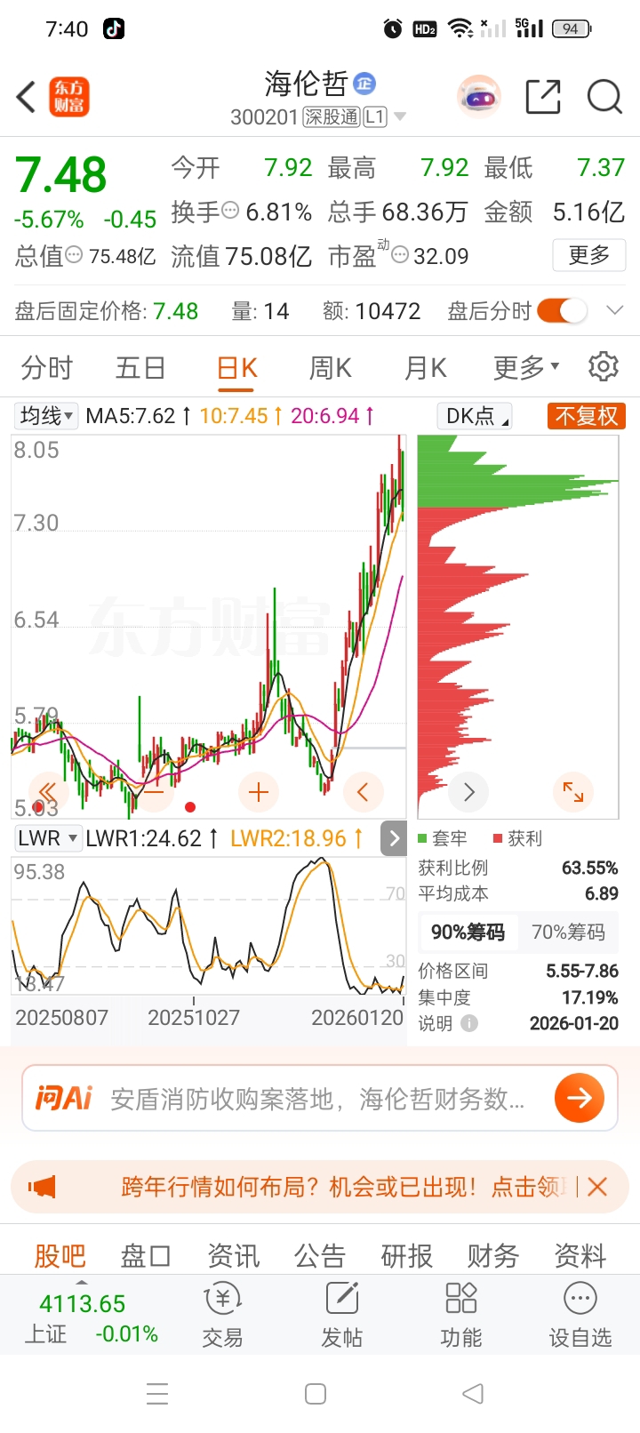 $海伦哲(SZ300201)$ 底部筹码松动破仓;注意风险!!!
