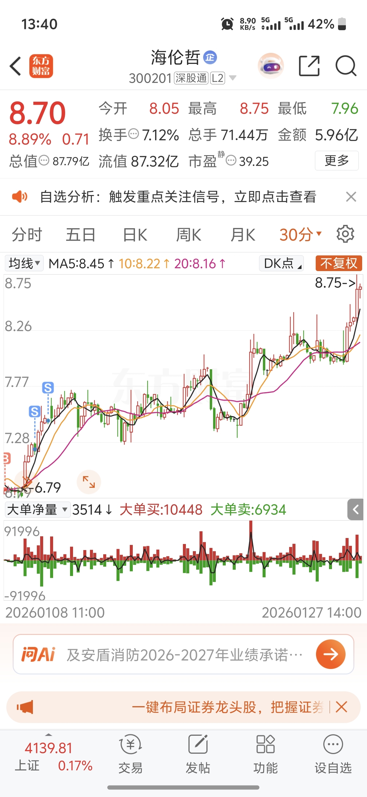 $海伦哲(SZ300201)$ 卖了的一直涨,其他涨了没卖的就一路回调,真的太秀了