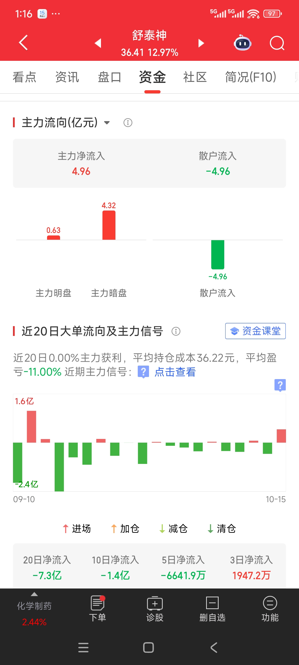 $舒泰神(SZ300204)$ 到目前暗盘流入4个多亿