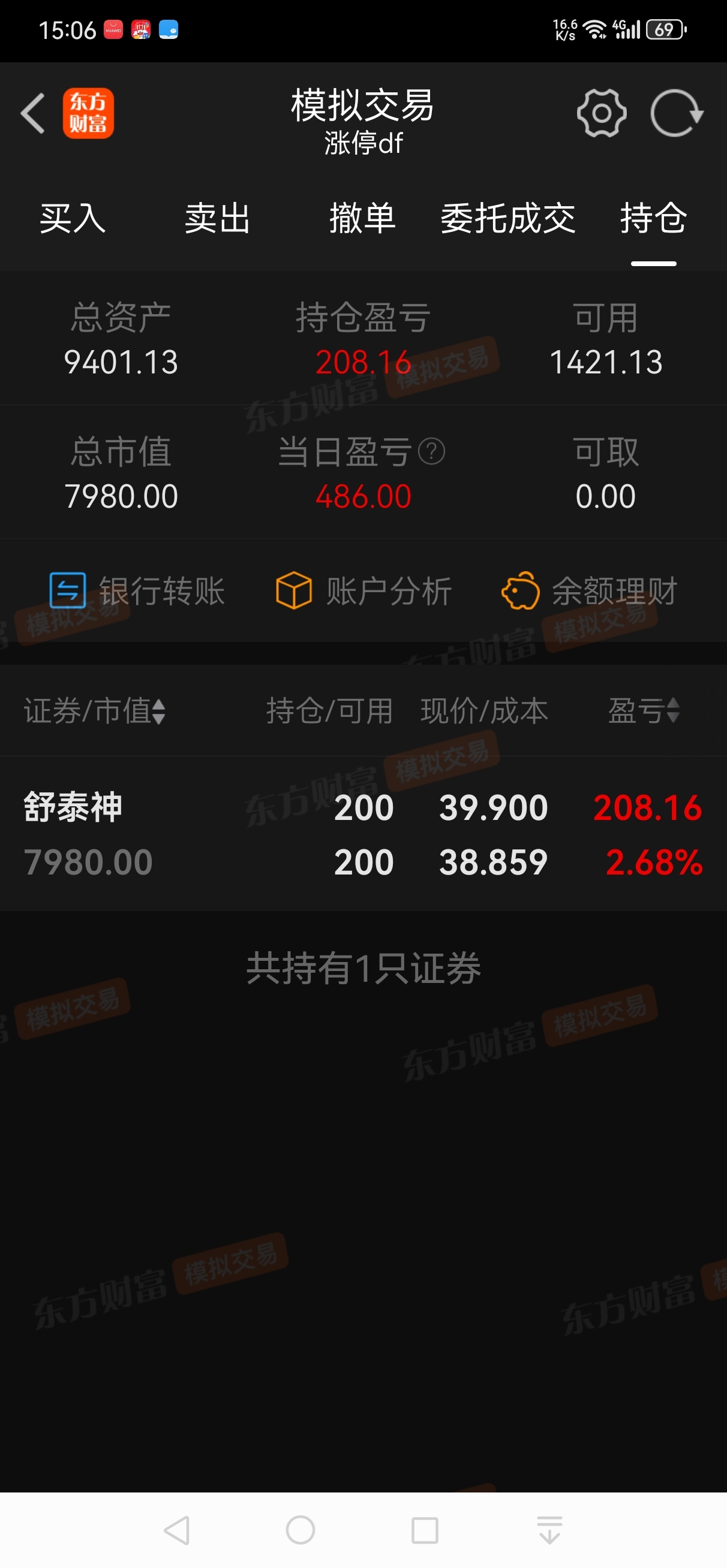 模拟盘持仓未动