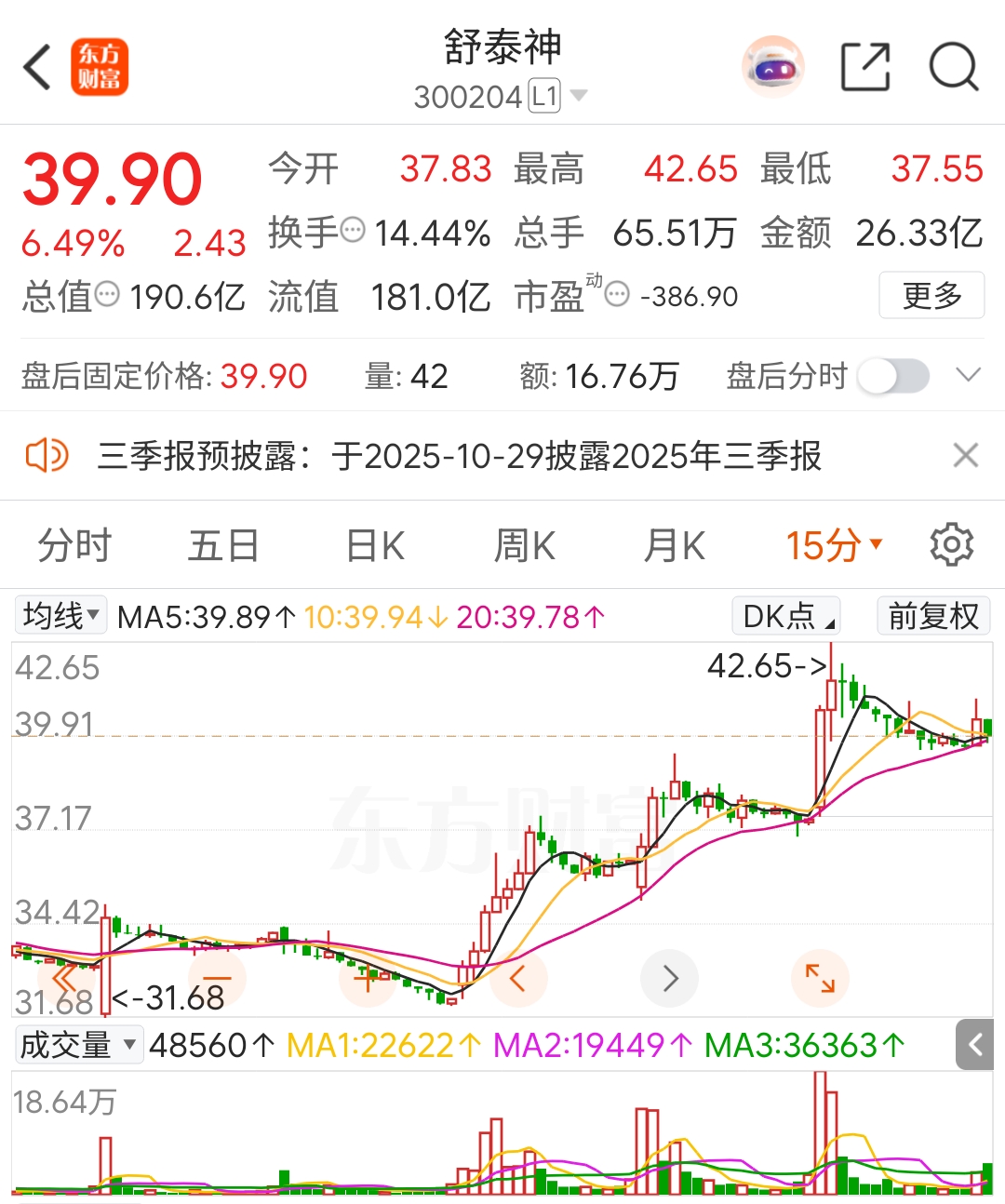 $舒泰神(SZ300204)$ 15分钟将迎来一波大行情