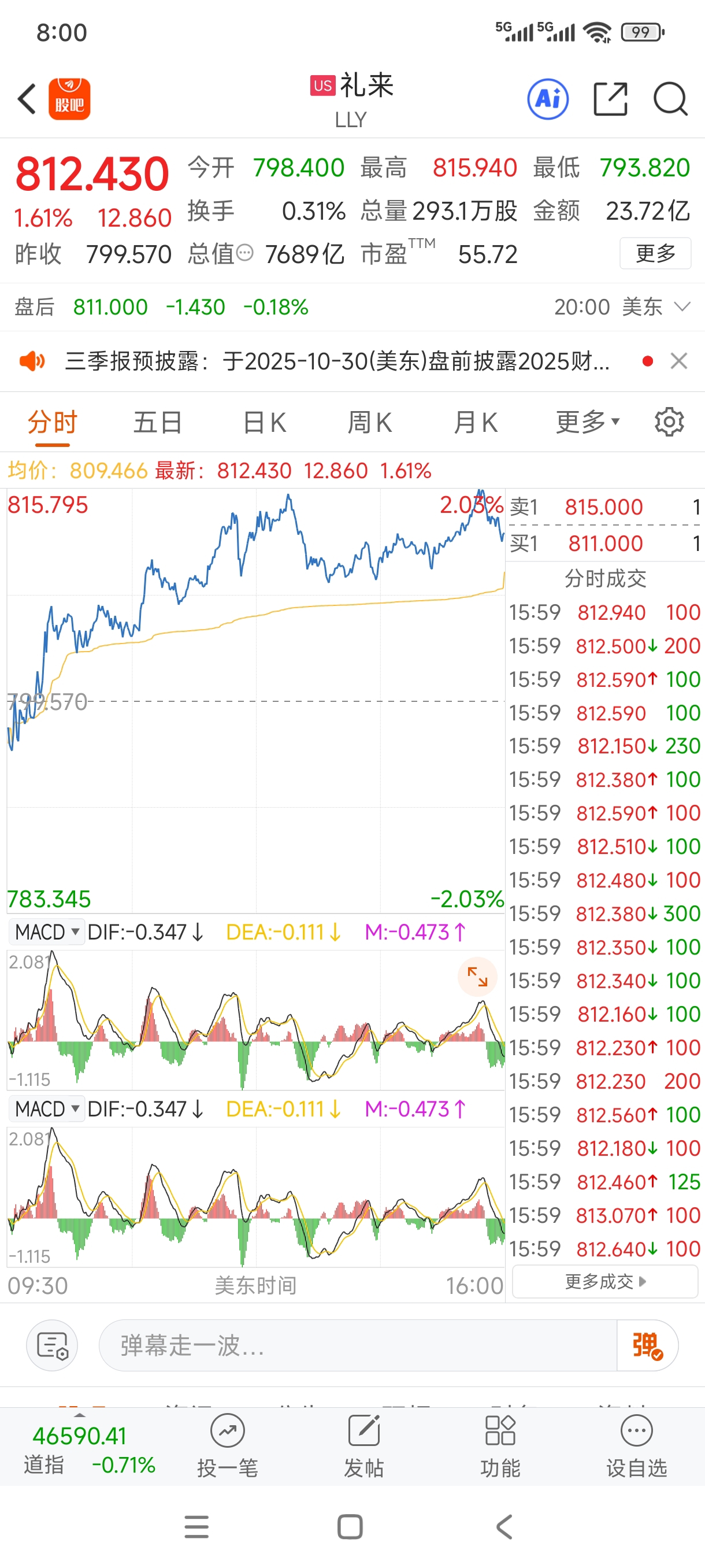 美股跌的,但是美股创新药龙头礼来翻红的