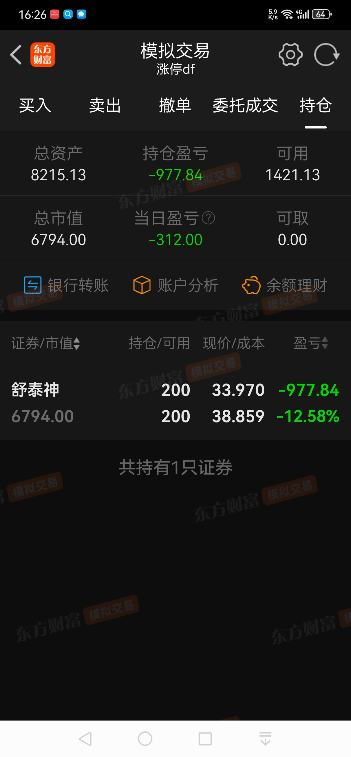$舒泰神(SZ300204)$ #实盘记录# 14万资金实盘第314天,现全没了(借钱9万帮解套),借钱9万元又变2.16万元,14万解套了又亏损完了。借钱9万又亏6.84万元。破3万元了。