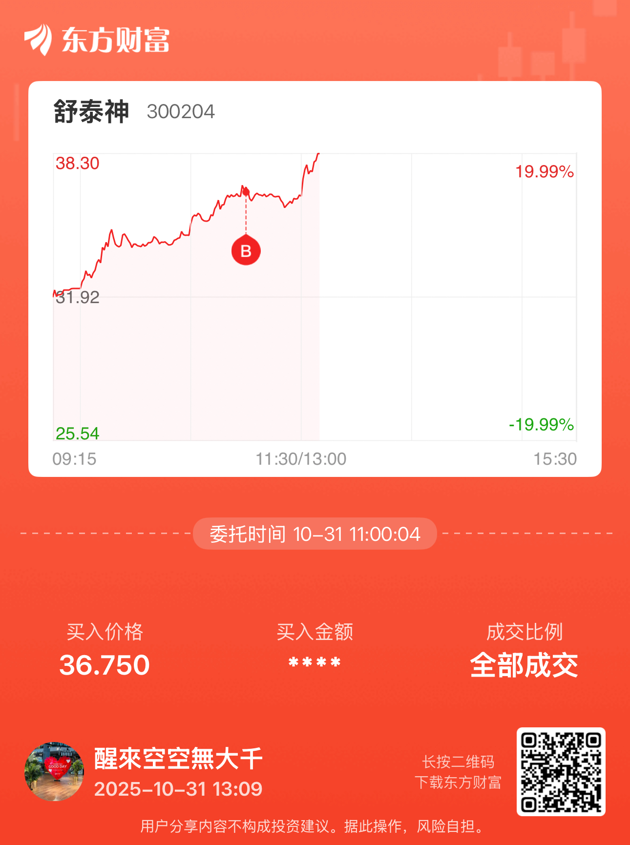 $舒泰神(SZ300204)$ 今天来晚了 强行上车的 老朋友又见面了。