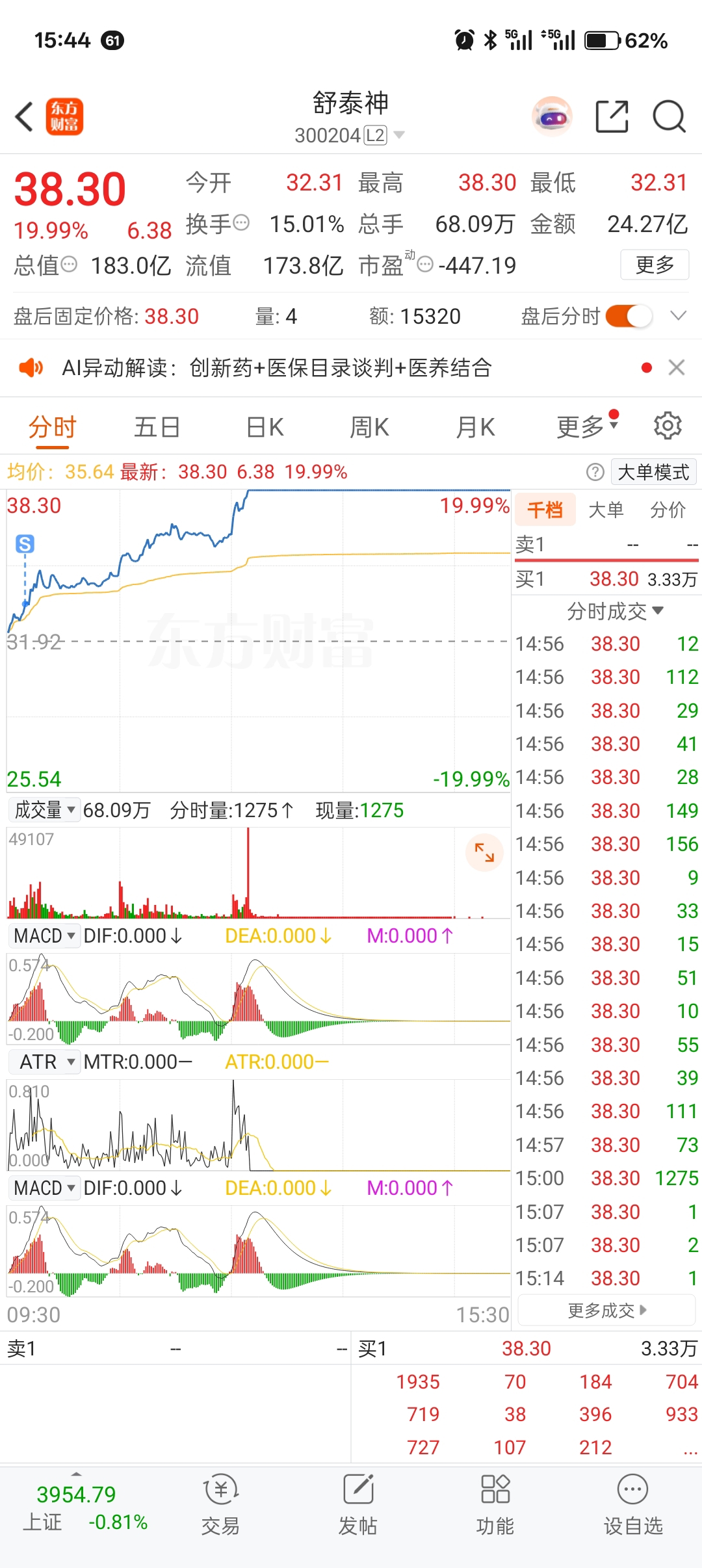 $舒泰神(SZ300204)$  各位感谢我吧,我一卖就涨停