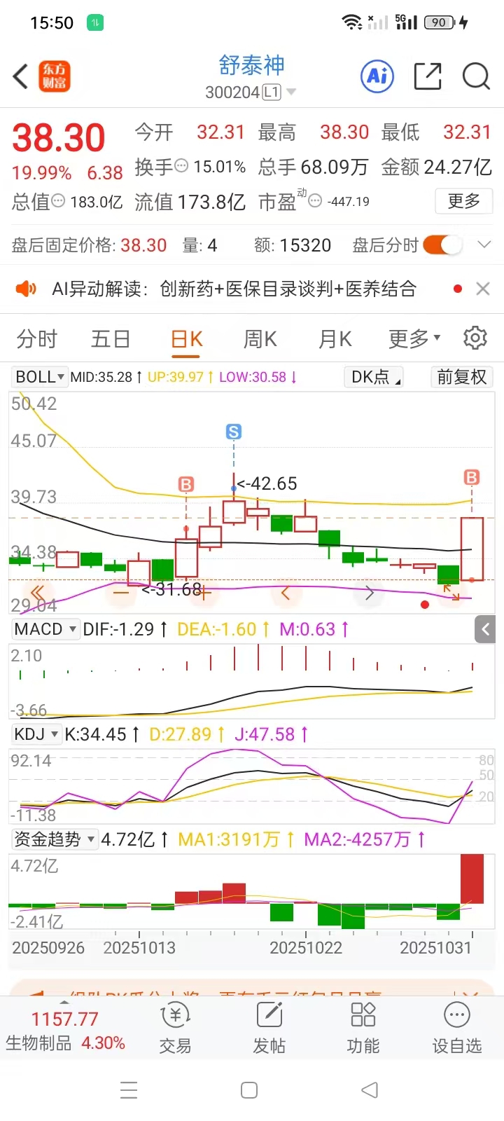 $舒泰神(SZ300204)$ 本月全靠这票吃饭了