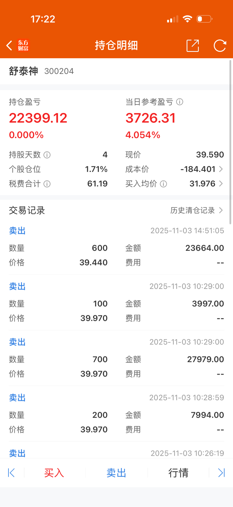 $舒泰神(SZ300204)$ 兄弟们,我先撤了,只剩100股观察了