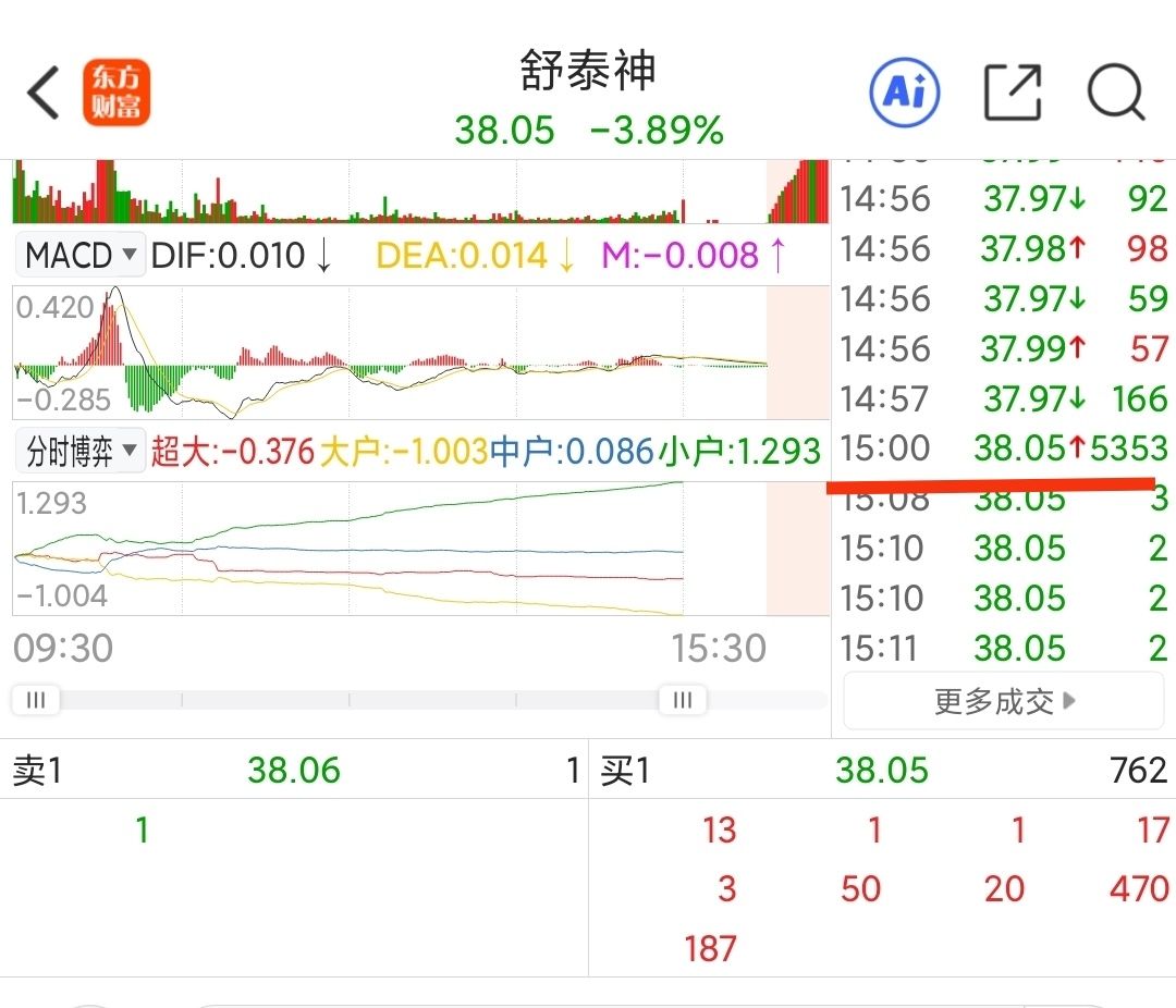 $舒泰神(SZ300204)$ 昨天偷吃的筹码果然是用来砸盘的