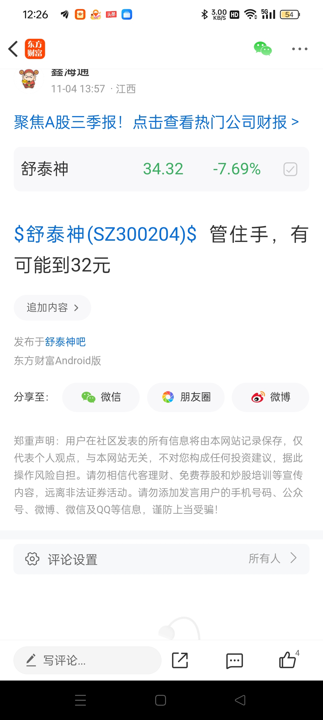 温馨提示: 1.根据《证券法》规定,禁止编造、传播虚假信息或者误导性信息,扰乱证券市场;2.用户在本社区发表的所有资料、言论等仅代表个人观点,与本网站立场无关,不对您构成任何投资建议。用户应基于自己的独立判断,自行决定证券投资并承担相应风险。《东方财富社区管理规定》