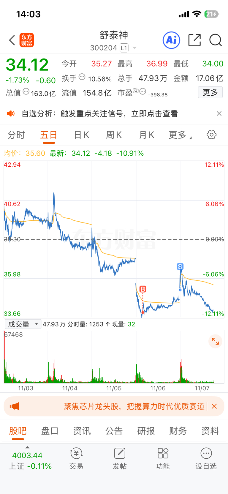 $舒泰神(SZ300204)$ 快进快出,挺好的