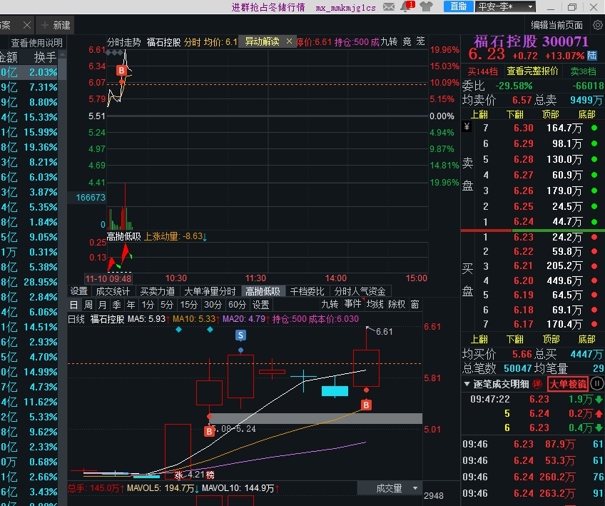 止盈东岳硅材,买入福石控股,做长线做的郁闷,那就来点儿快进快出超短