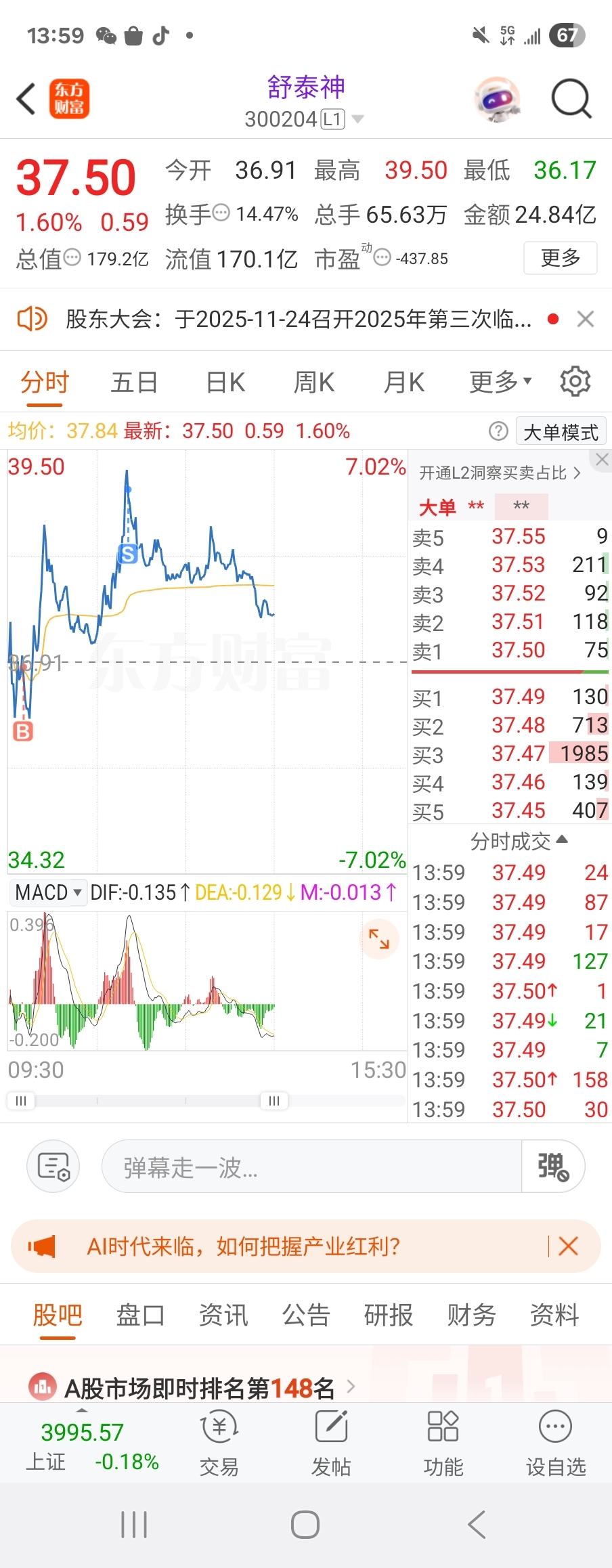 $舒泰神(SZ300204)$ 还好,跑了个大头