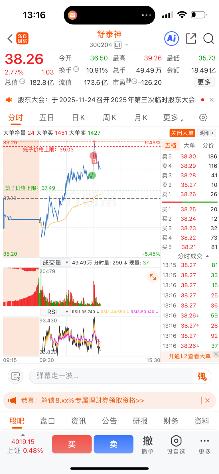 $舒泰神(SZ300204)$ 39.26也能被我买到,哈哈