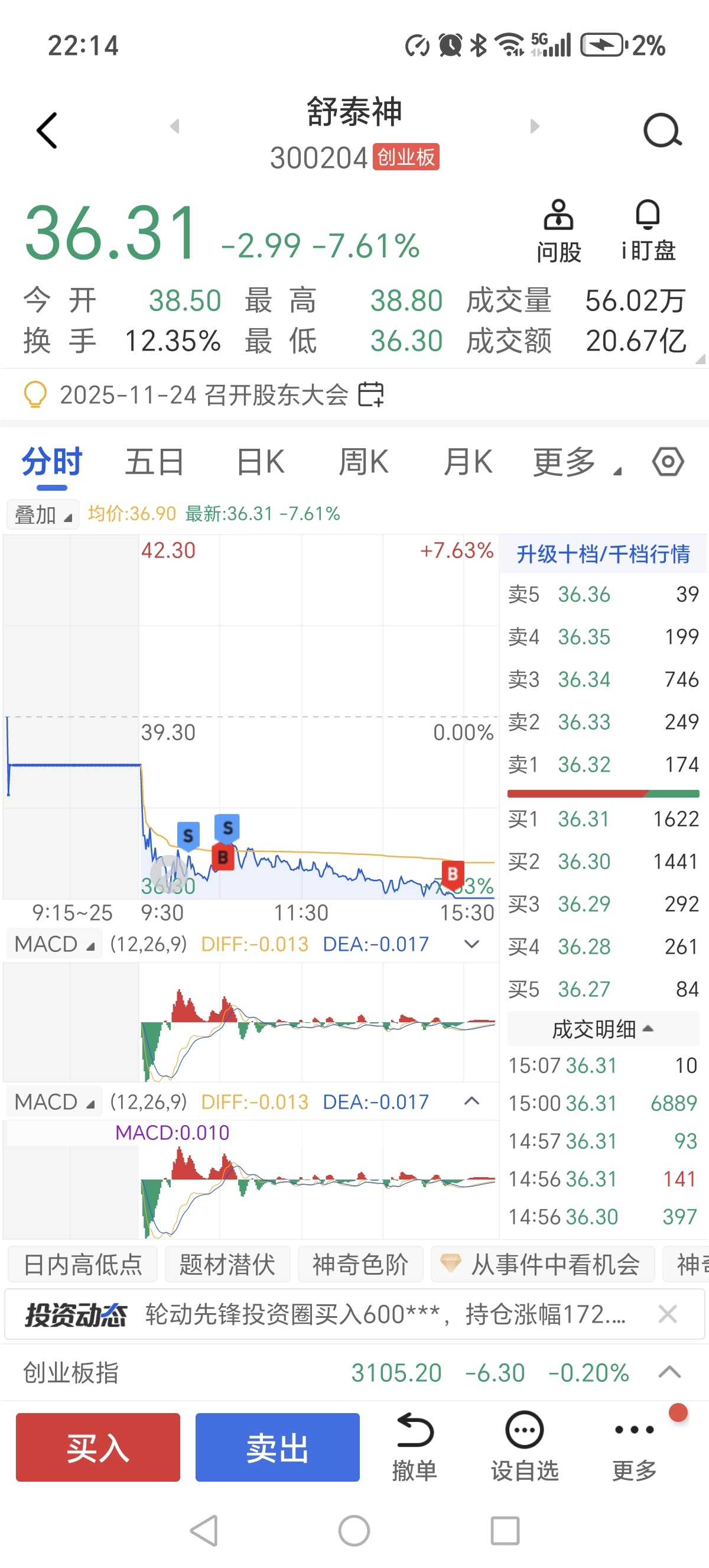 $舒泰神(SZ300204)$ 早上本打算清仓,点错了误入,干脆就一错到底,尾盘加仓猛干。