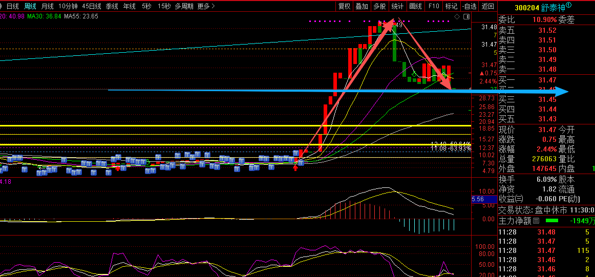 周线你只要知道这轮调整到底结束没有,有没有可能结束。周线看的是未来。不仅仅是这么一两周,一两个月
