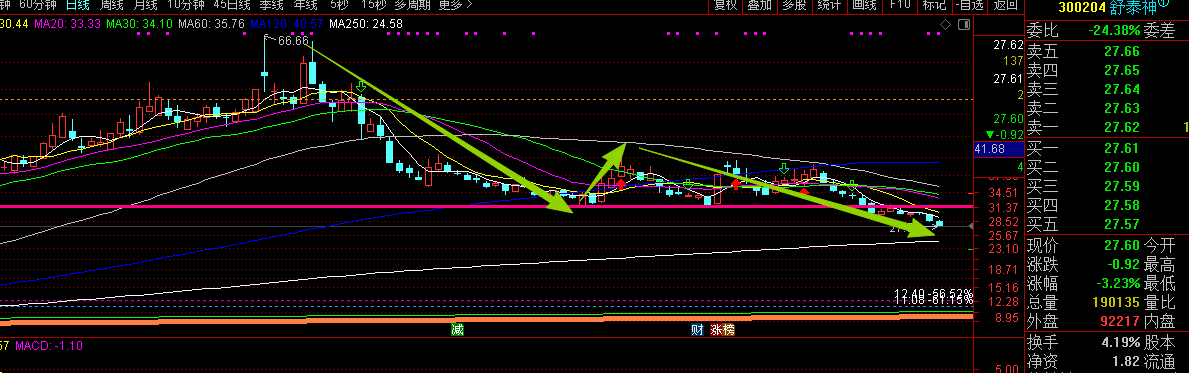 为什么我前几天说创新药在半年线这个位置是有可能调整结束的,2次跌破我的多空线都在3天内起来了。第三次面临这样的状况。虽然C段时间周期可能没到,但是空间差不多到位了,加上目前所有均线都搅在一起了,很有可能出现变盘的可能。假如启动成功那必须是往前高去的。当然目前受制于外围情况不稳,上证指数还是继续在调整中的,也不排除继续走C-3的可能跟。这个就比较难受了,下面就是缺口跟年线所在位置了。小舒跟板块基本都是同时调整的,调整的幅度小舒确实是比板块大多了。现在唯一的期盼就是板块能稳住向好,否则一点希望都看不到了。本来今天的短线资金应该是往食品创新药来的,但是看不到