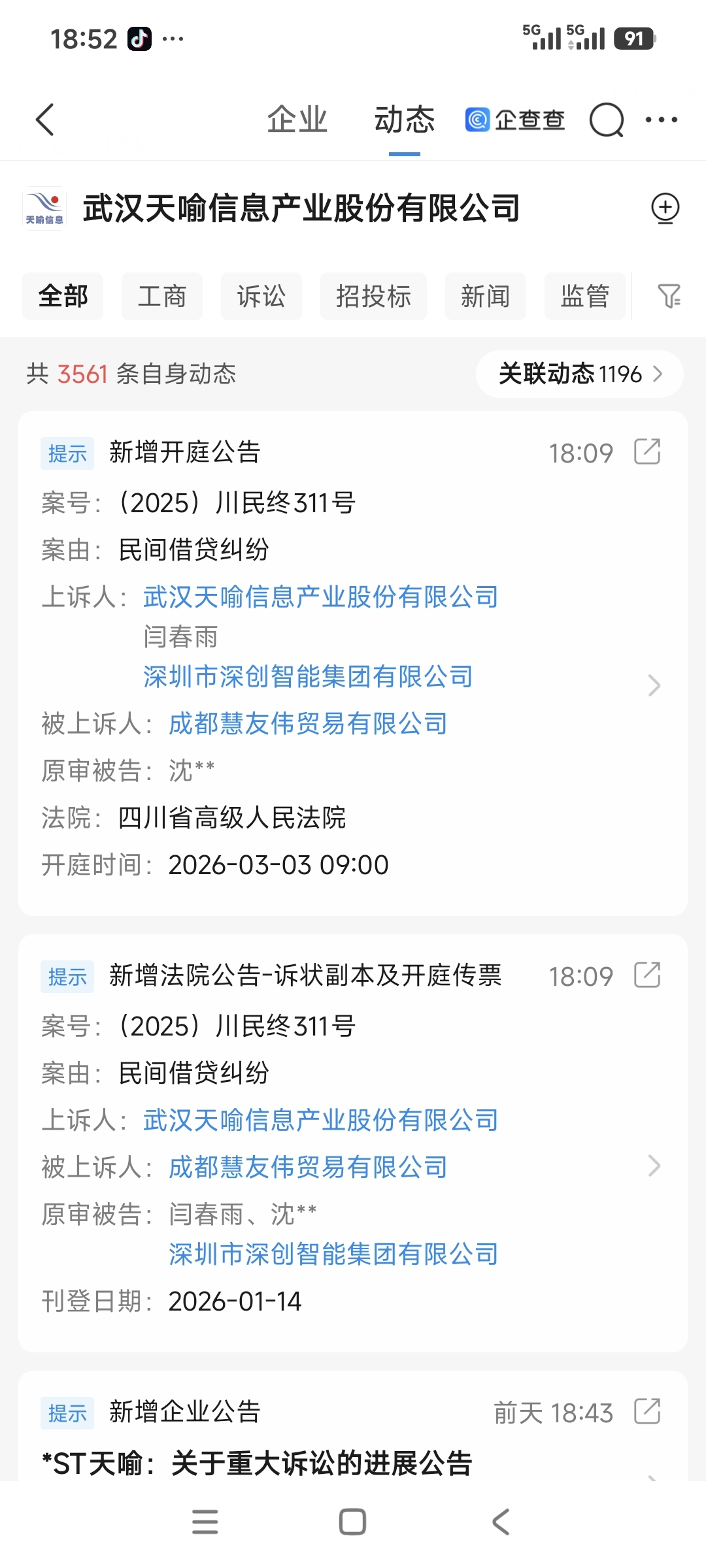 $*ST天喻(SZ300205)$ 重要信息:慧友伟案件终审日期2026年3月3日,除天喻外,闫春雨和深创智能也提出上诉。咸鱼判断该借款使用人为原工智董事长沈进长。中茵帮闫处理债务后,闫大概率会有所作为。