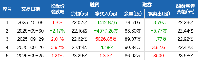 欣旺达:融资净偿还1412.87万元,融资余额22.02亿元(10-09)