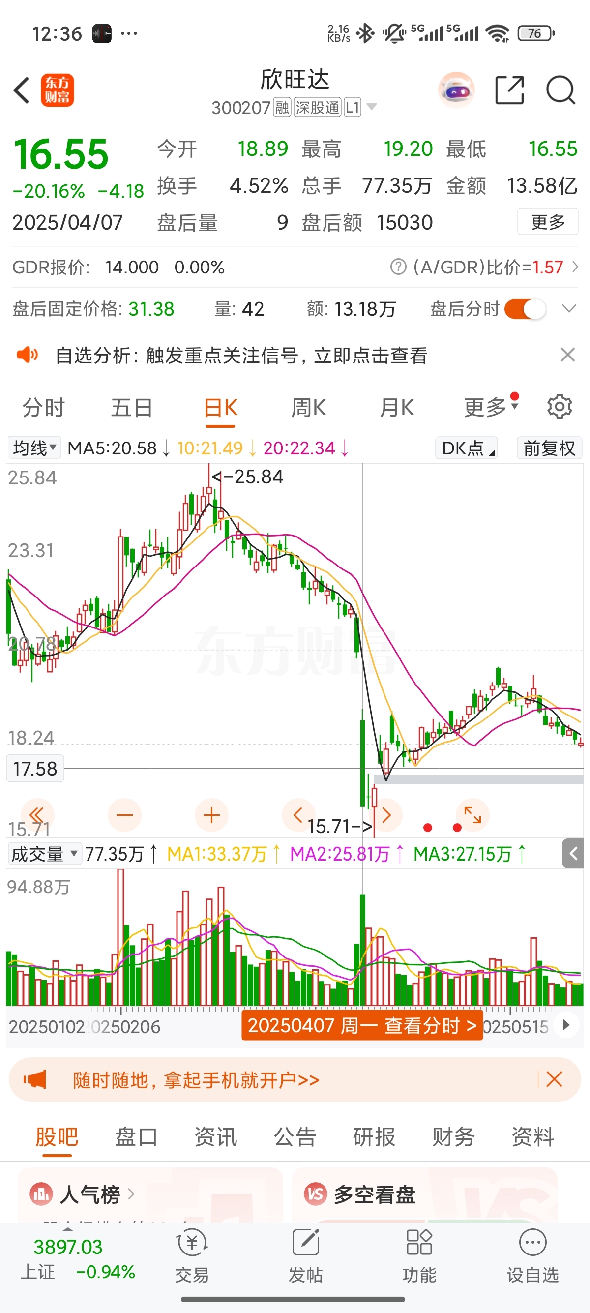 $欣旺达(SZ300207)$ 会不会复制4月7日的走势
