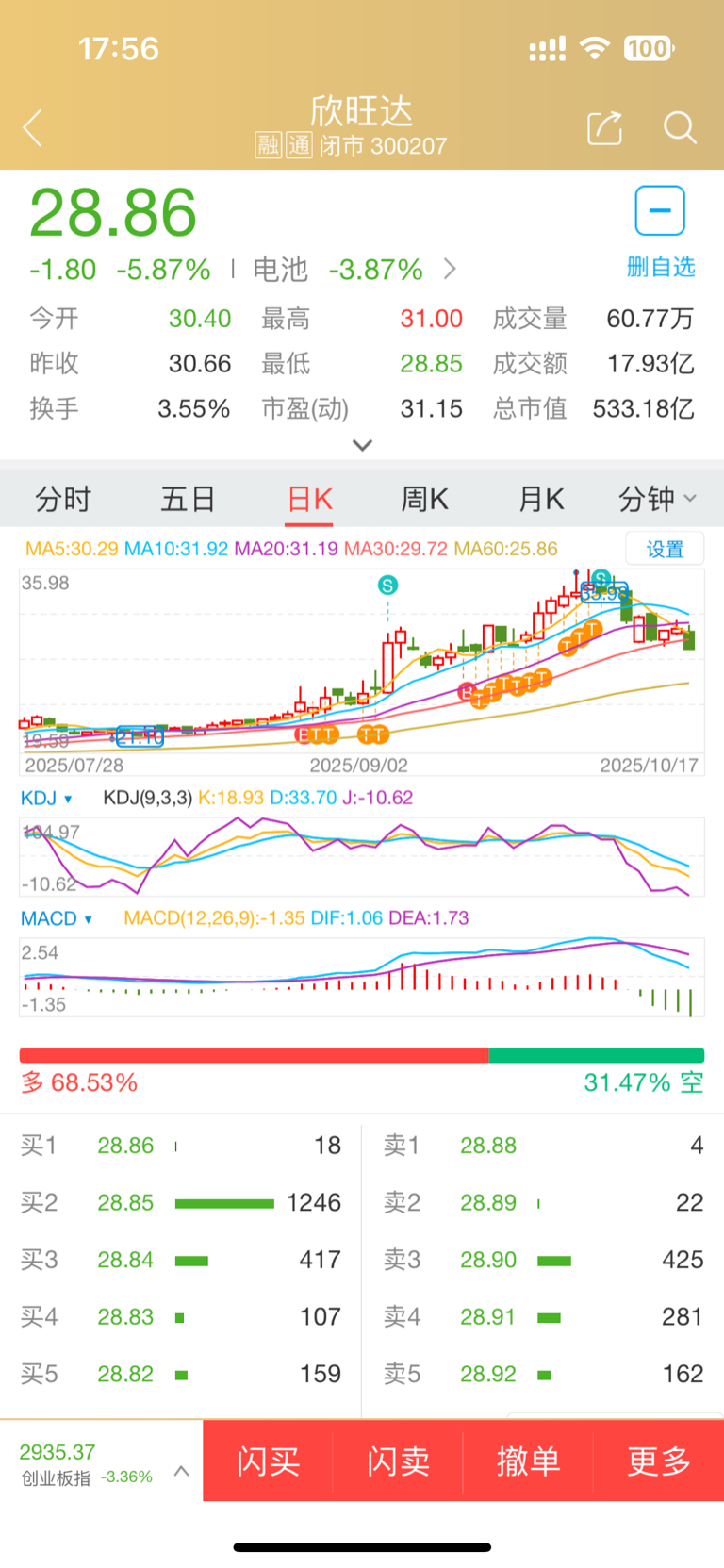 $欣旺达(SZ300207)$ 都是回忆上个月陪伴一个月的票。兄弟们坚持一会。