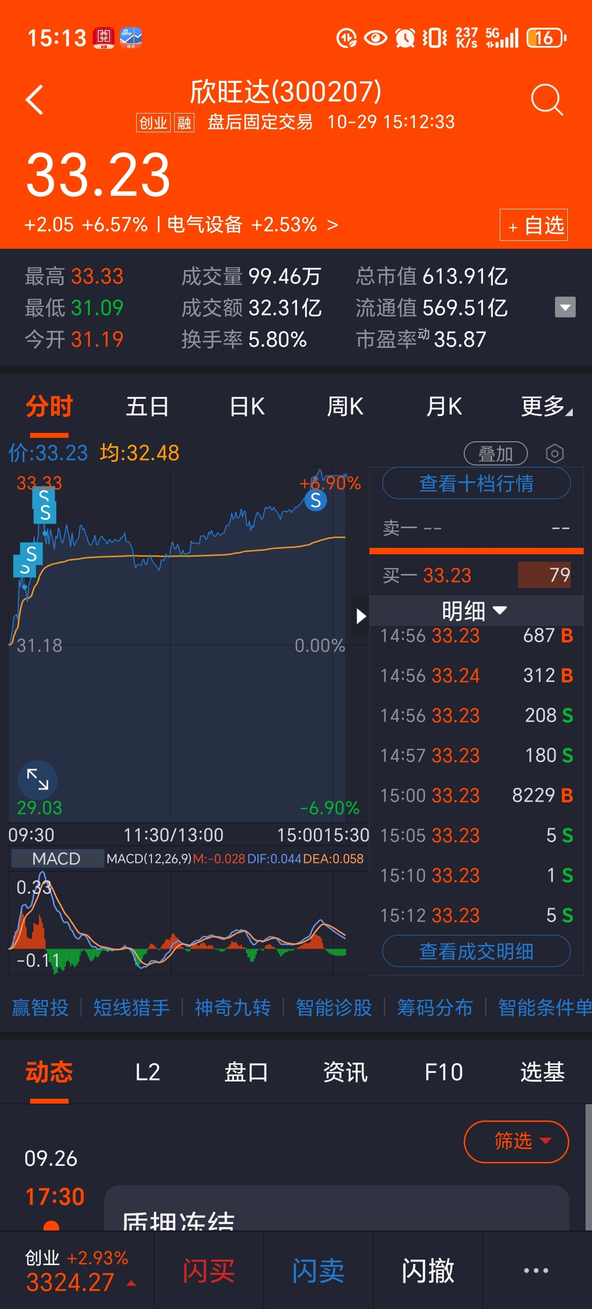 $欣旺达(SZ300207)$ 今天卖完了,不知道对还是错!