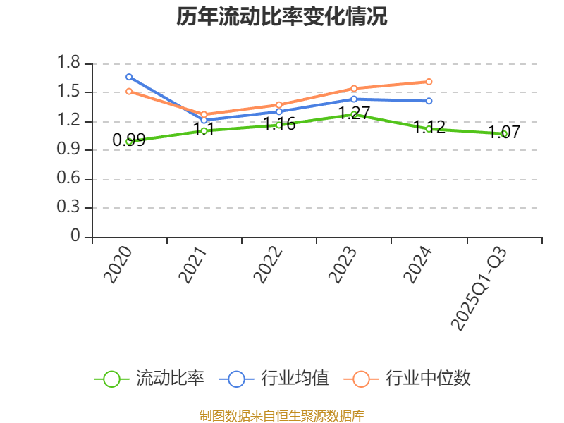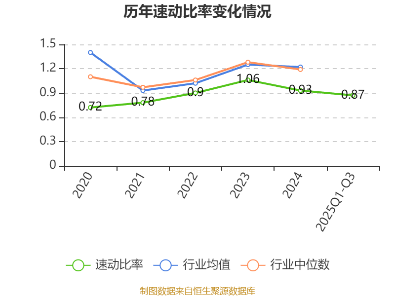 2025年前三季度,公司流动比率为1.07,速动比率为0.87。