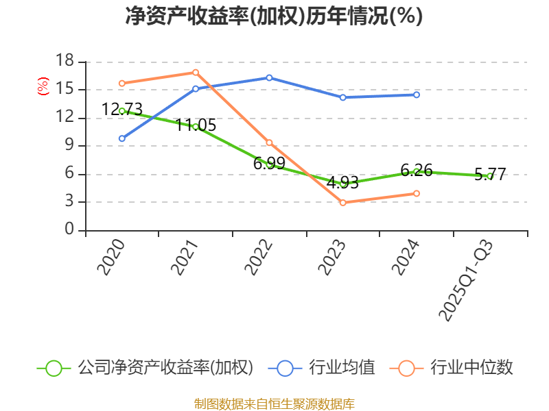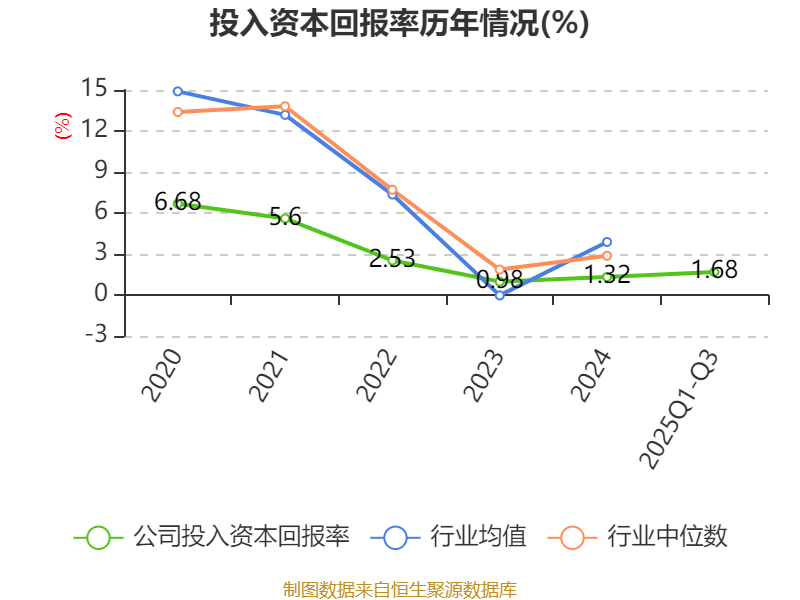 盈利能力方面, 2025年前三季度公司加权平均净资产收益率为5.77%,同比上升0.6个百分点。公司2025年前三季度投入资本回报率为1.68%,较上年同期上升0.34个百分点。