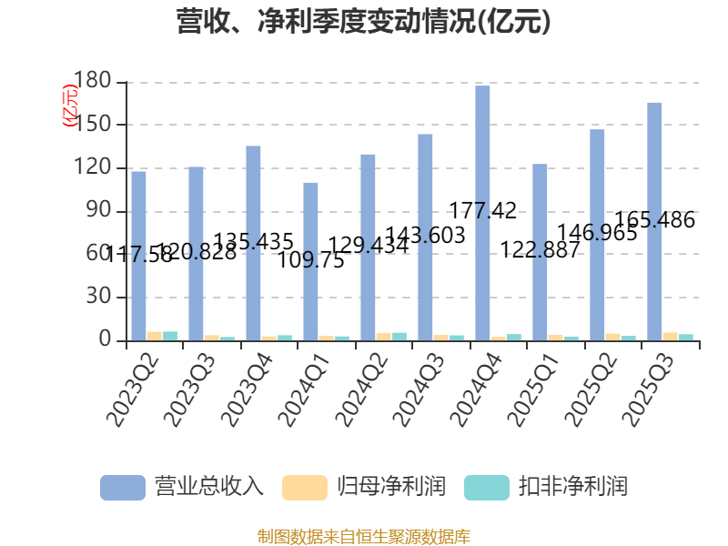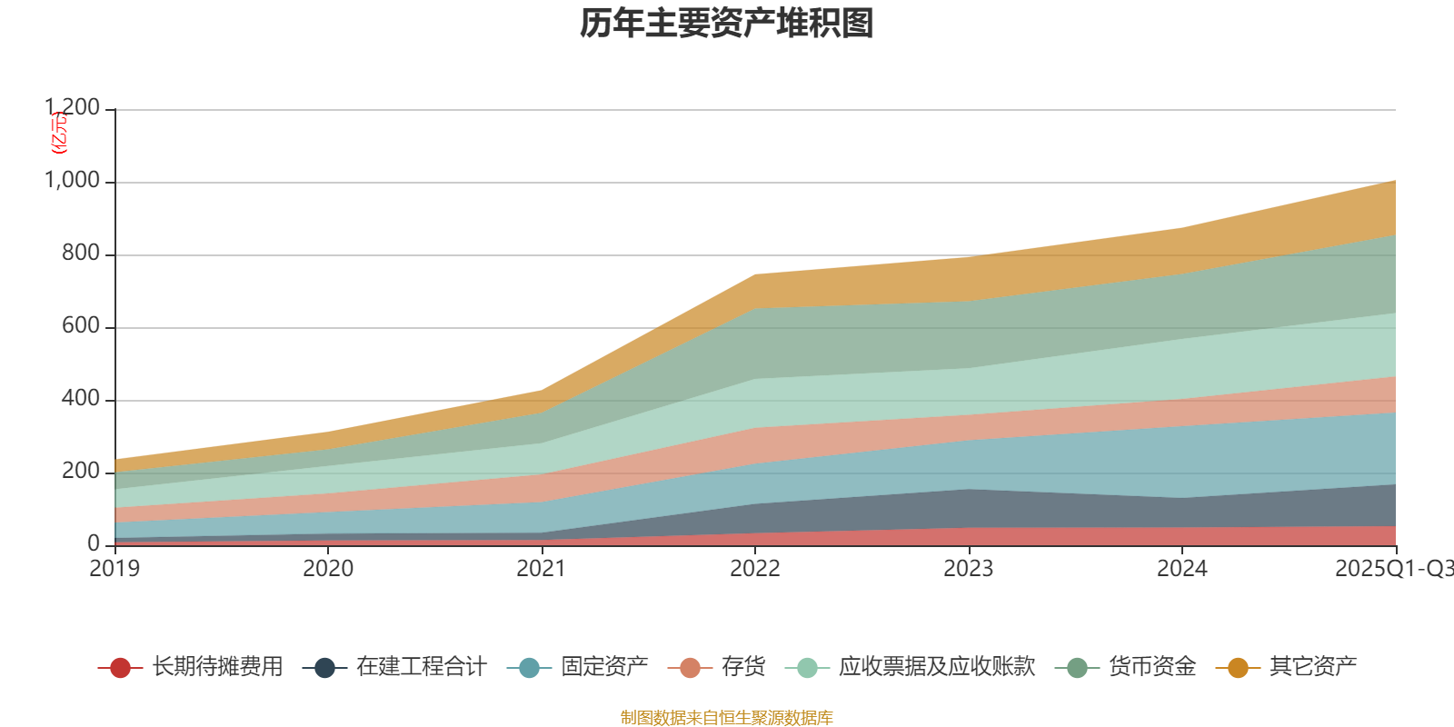 资产重大变化方面,截至2025年三季度末,公司固定资产较上年末增加0.14%,占公司总资产比重下降2.93个百分点;在建工程合计较上年末增加41.55%,占公司总资产比重上升2.15个百分点;应收票据及应收账款较上年末增加5.38%,占公司总资产比重下降1.59个百分点;存货较上年末增加32.73%,占公司总资产比重上升1.32个百分点。