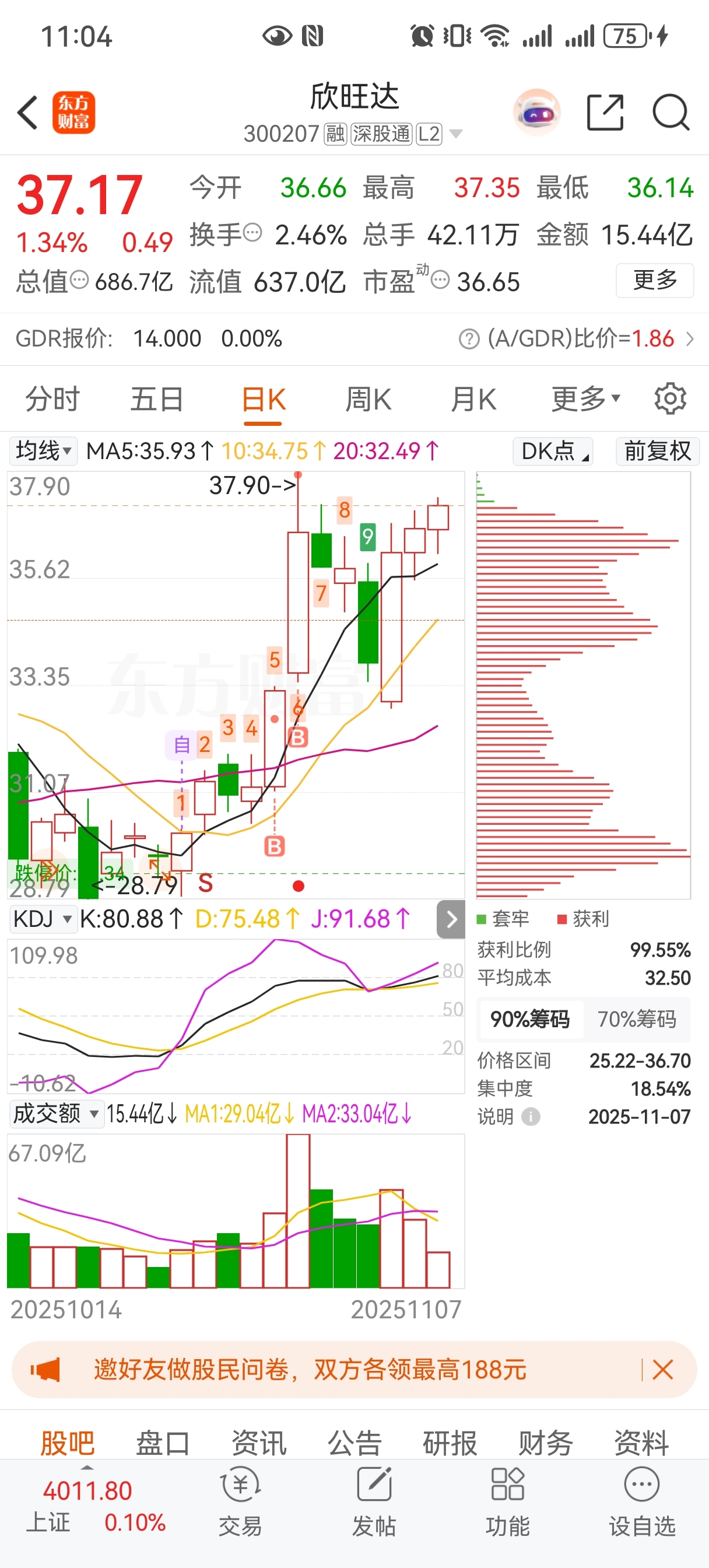 $欣旺达(SZ300207)$ 意思是不让我解套37.9