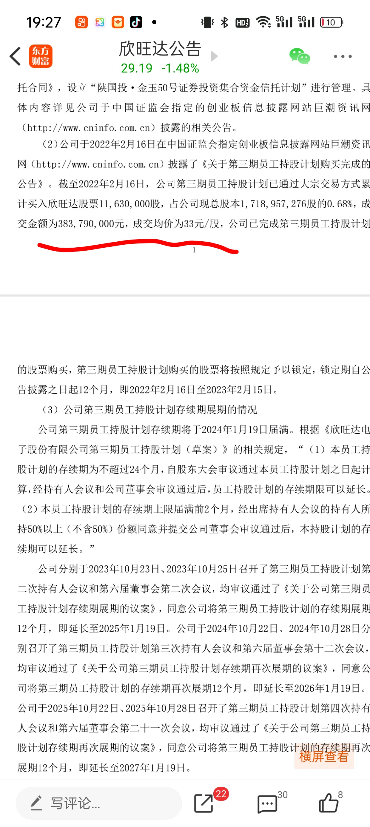 $欣旺达(SZ300207)$ 低于欣旺达全员持股价,慢慢来呗