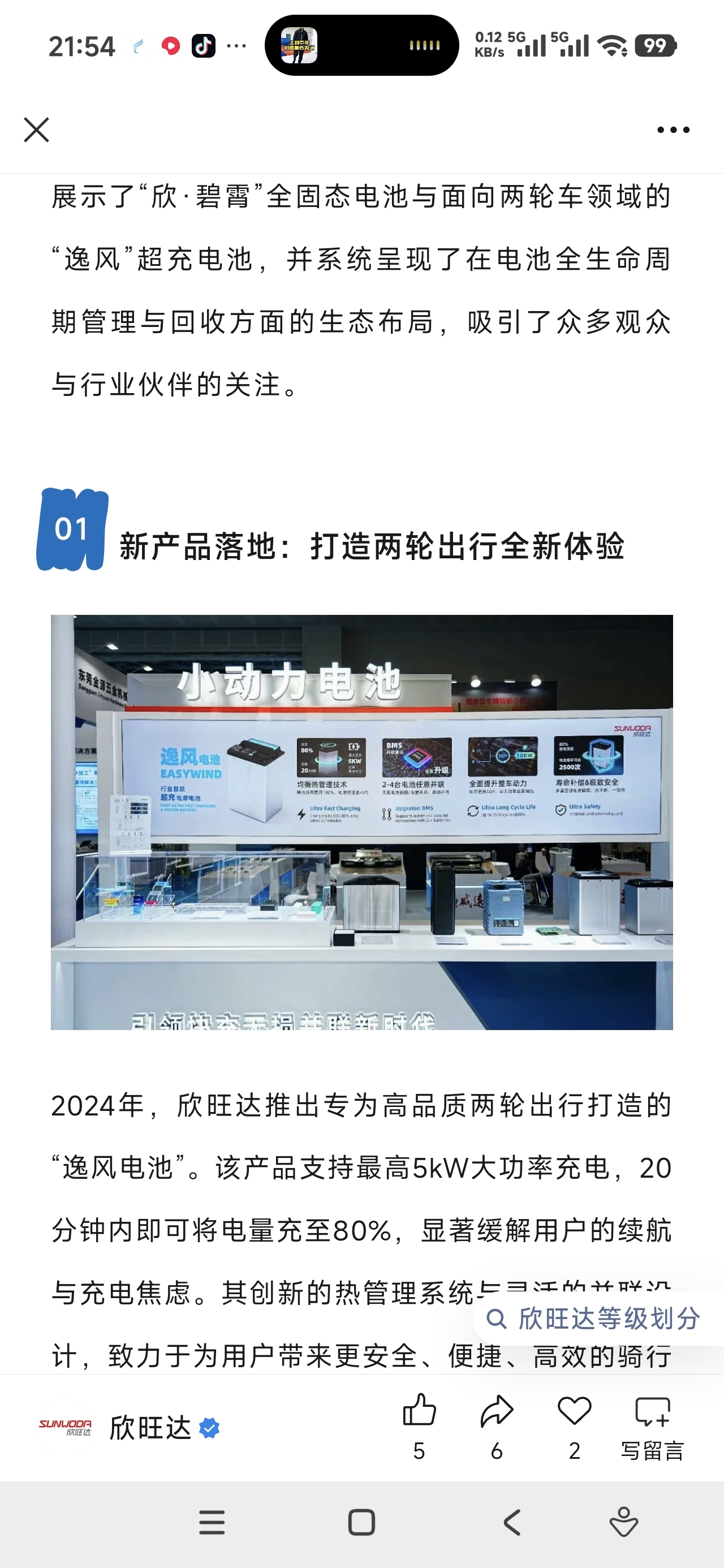 $欣旺达(SZ300207)$ 全固态电池 欣碧霄+两轮电动车 逸风,还不快点起飞,最近电动自行车新国标出台,撞上风口没有?!!