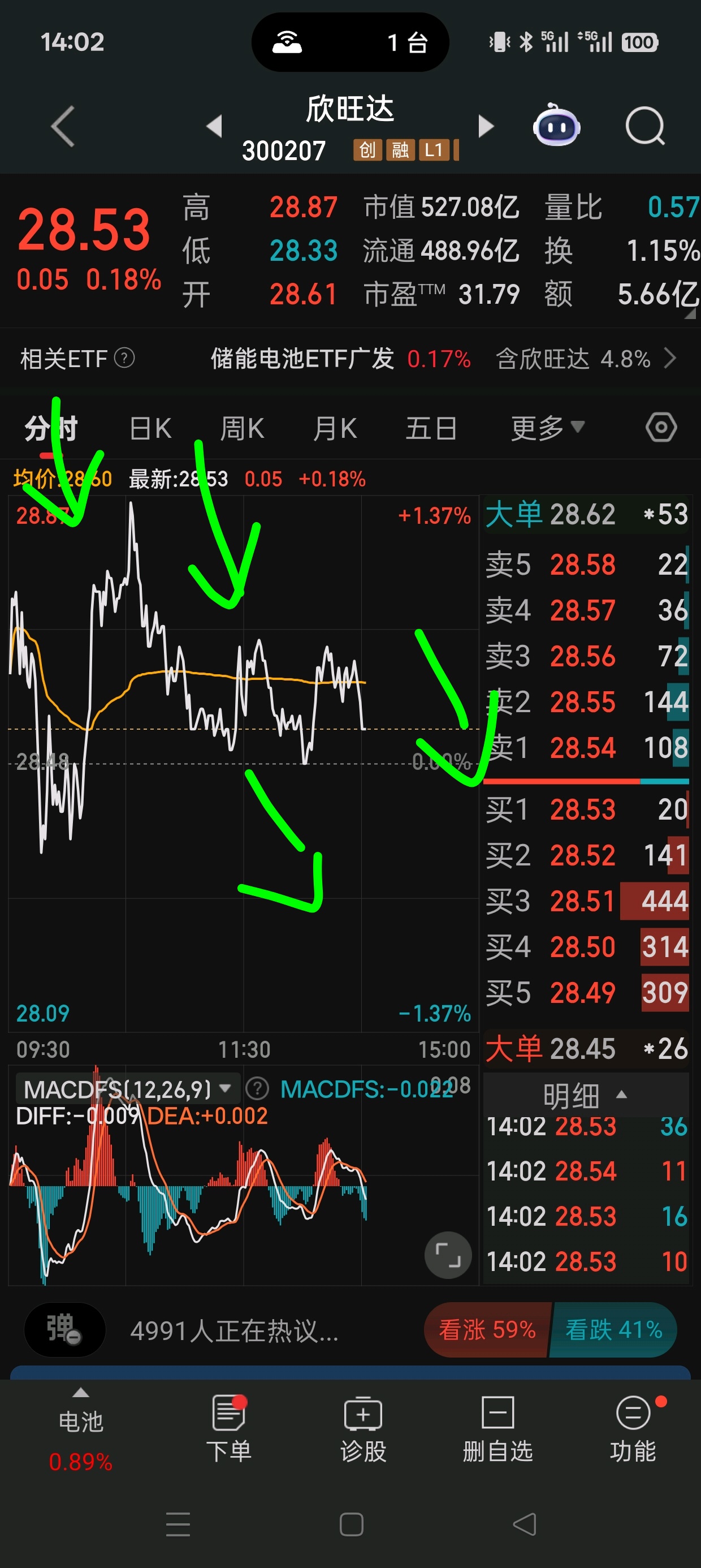 $欣旺达(SZ300207)$ 服了主力了!一天内要砸盘,要压个4-5次!!!