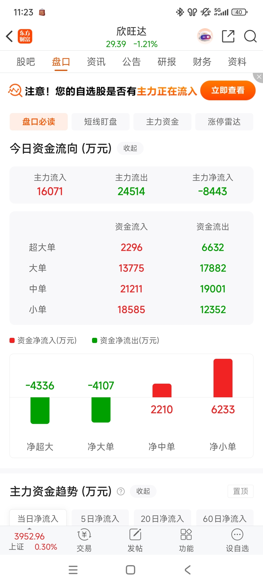 $欣旺达(SZ300207)$ 上午净流出这么多,今天也就这样了,5日线徘徊