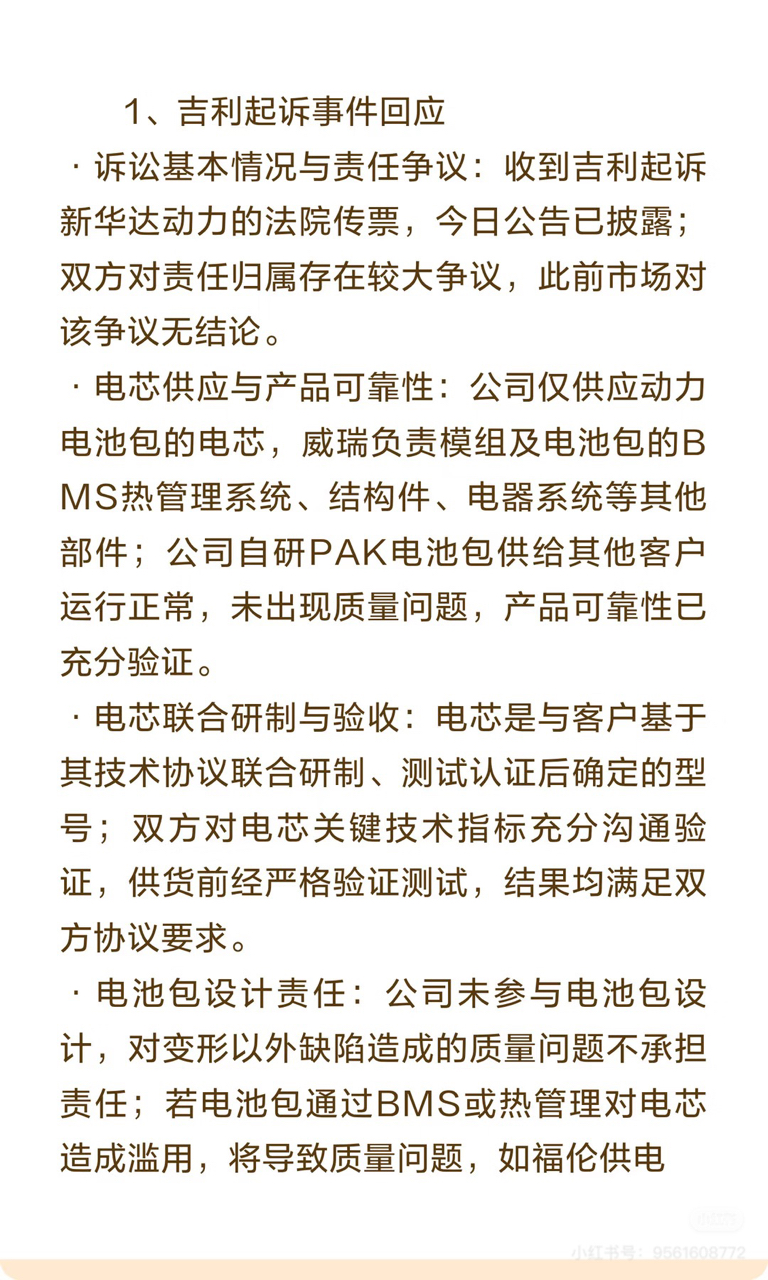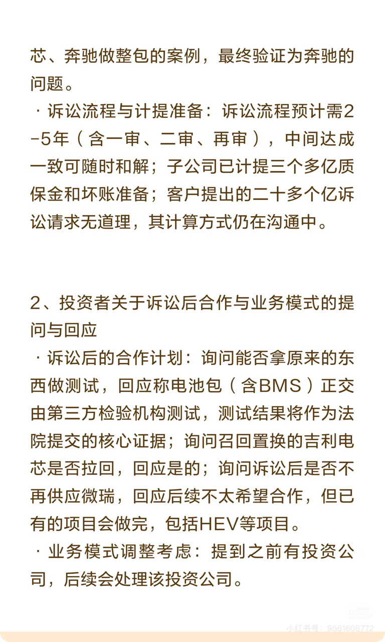 $欣旺达(SZ300207)$ 搬运了近期针对诉讼事件更新的电话会议沟通内容。