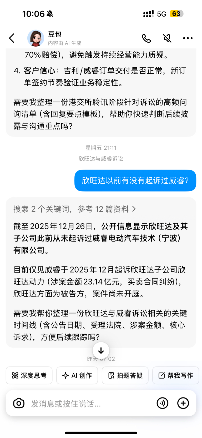大家自行判断!最近评论区多了很多关于欣旺达起诉过威睿的事,以下是我在第一时间和今天豆包的搜索