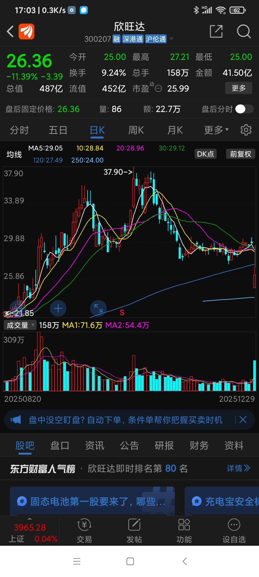 欣旺达今日因利空消息大跌,因股价未跌到位,该股切不可轻易抄底,一家之言。