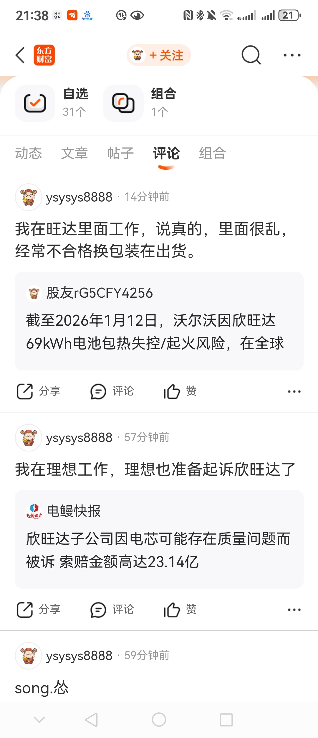 $欣旺达(SZ300207)$ 这个人,请各位股友鉴别一下。