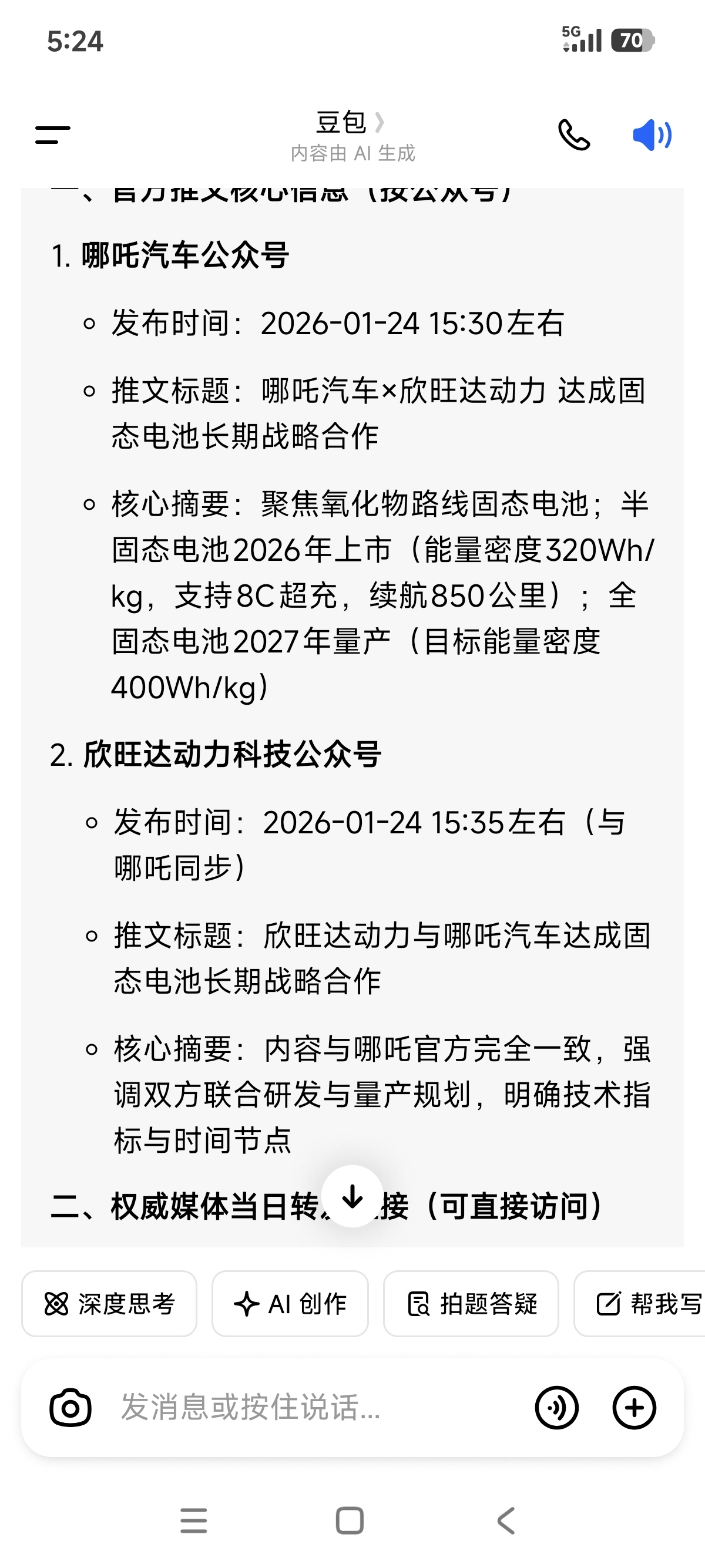 $欣旺达(SZ300207)$ 为什么我两个公众号都看不到这信息,豆包也会造摇?