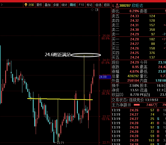 $欣旺达(SZ300207)$ 24.6满足第一波涨幅,准备跑路
