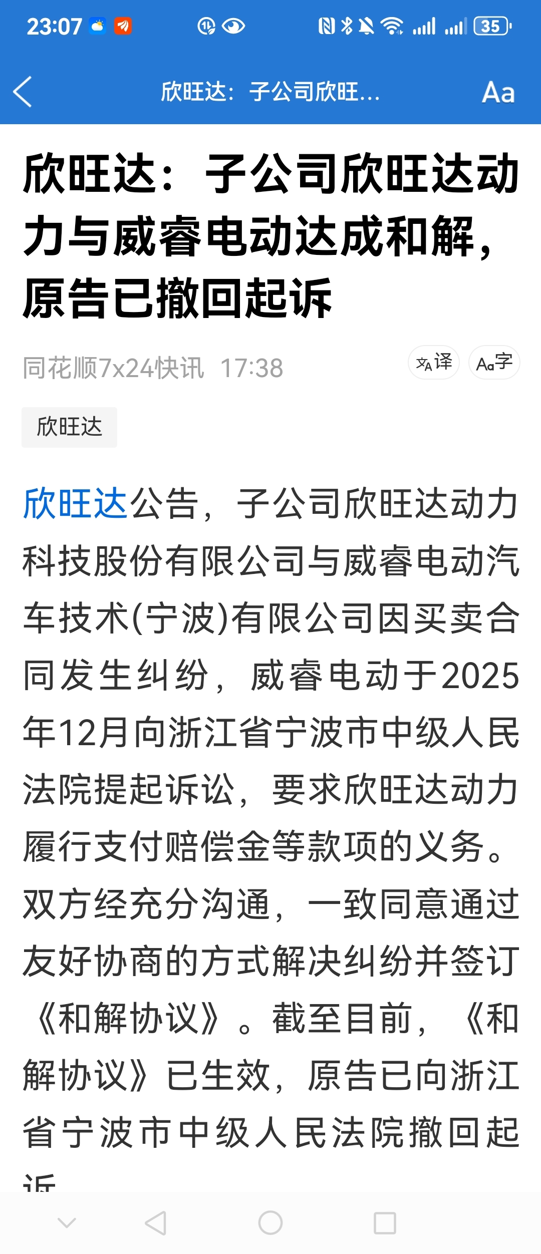 $欣旺达(SZ300207)$ 正式宣布:撤诉!!!闹剧结束了。经过这次波折,会有更多车企选择欣旺达,1-质量没问题,2-忠厚担当,3-技术领先