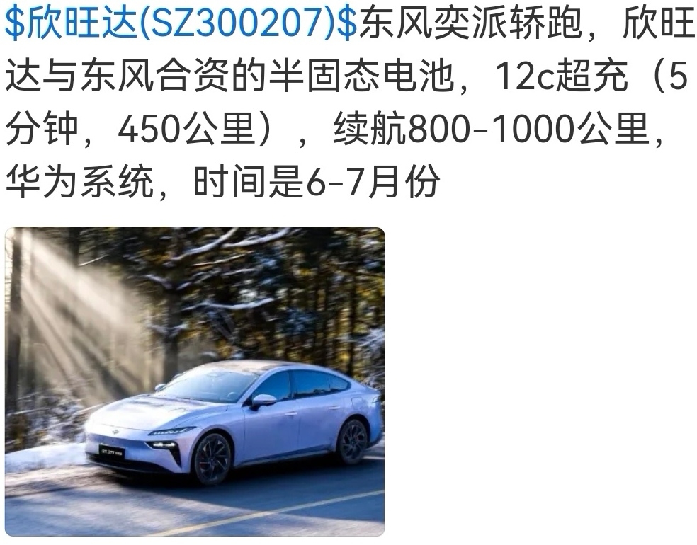$欣旺达(SZ300207)$ 欣旺达12c超充,最晚今年9月份就装车了。至于刚刚发布的技术,比亚迪10%-70%相当于全部电量的60%,也就是续航400-500公里左右,并不是什么先进的技术,至于颠覆性更加离谱了!