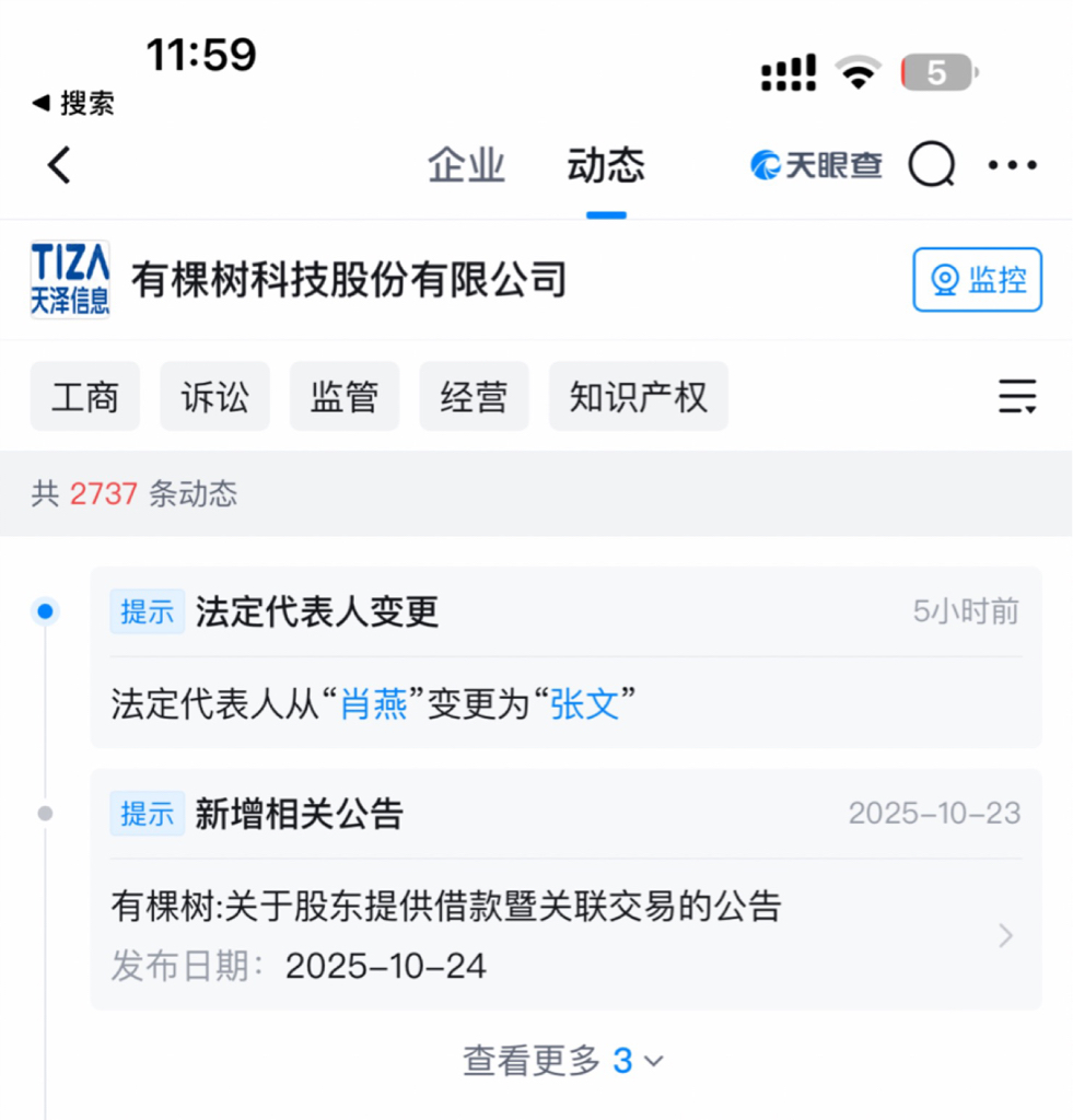 $有棵树(SZ300209)$ 法人已变更 工商ok