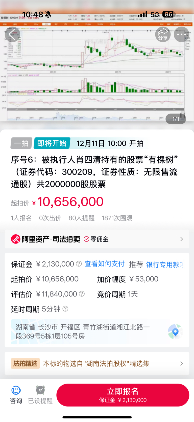$有棵树(SZ300209)$ 拉高是因为后天要拍卖原董事长的股份