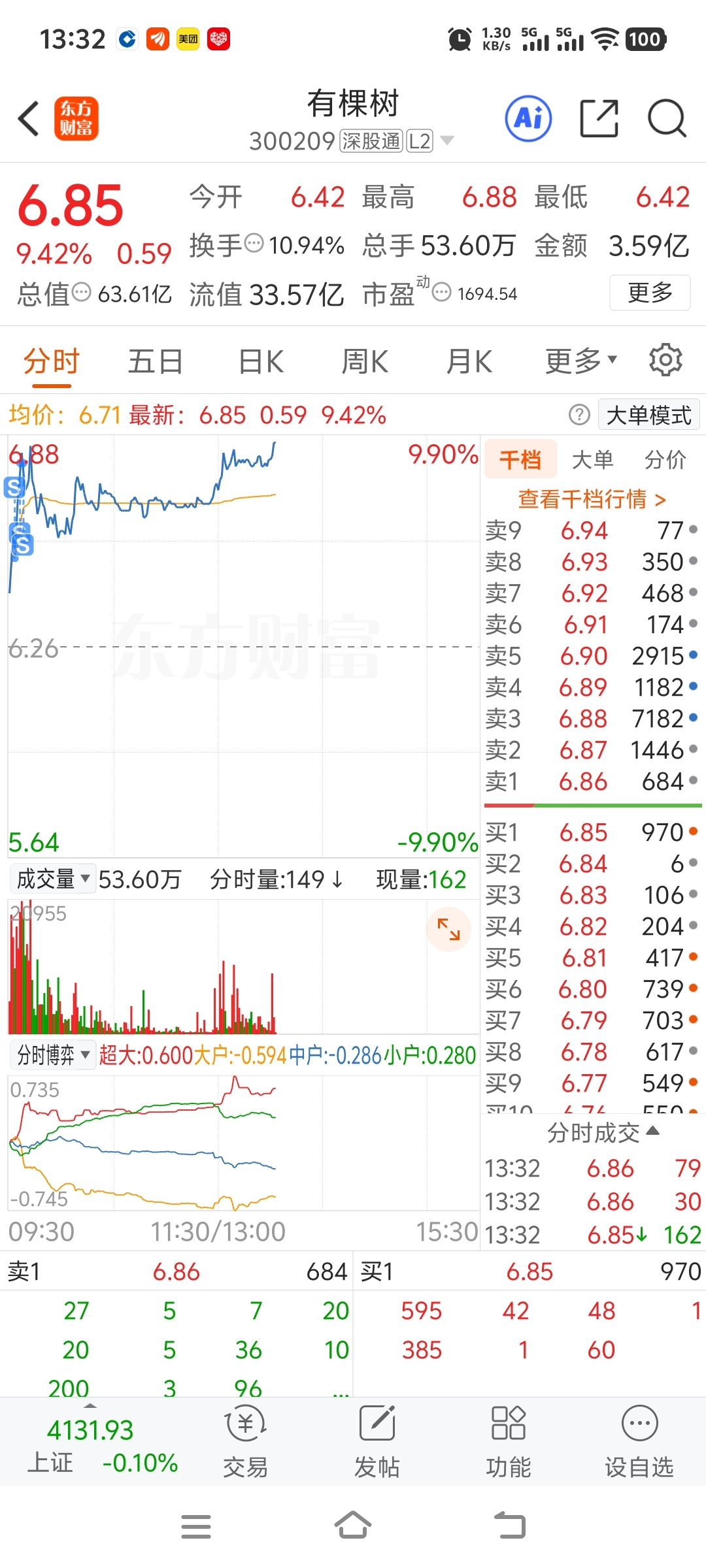 $有棵树(SZ300209)$ 先走一步,祝留下的家人们赚20cm的大肉,小弟技术只能吃这点肉渣