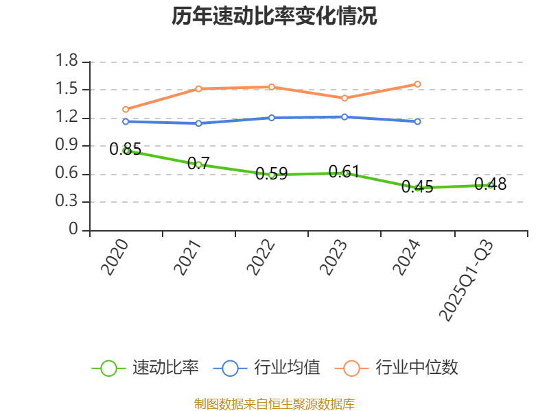 2025年前三季度,公司流动比率为0.84,速动比率为0.48。