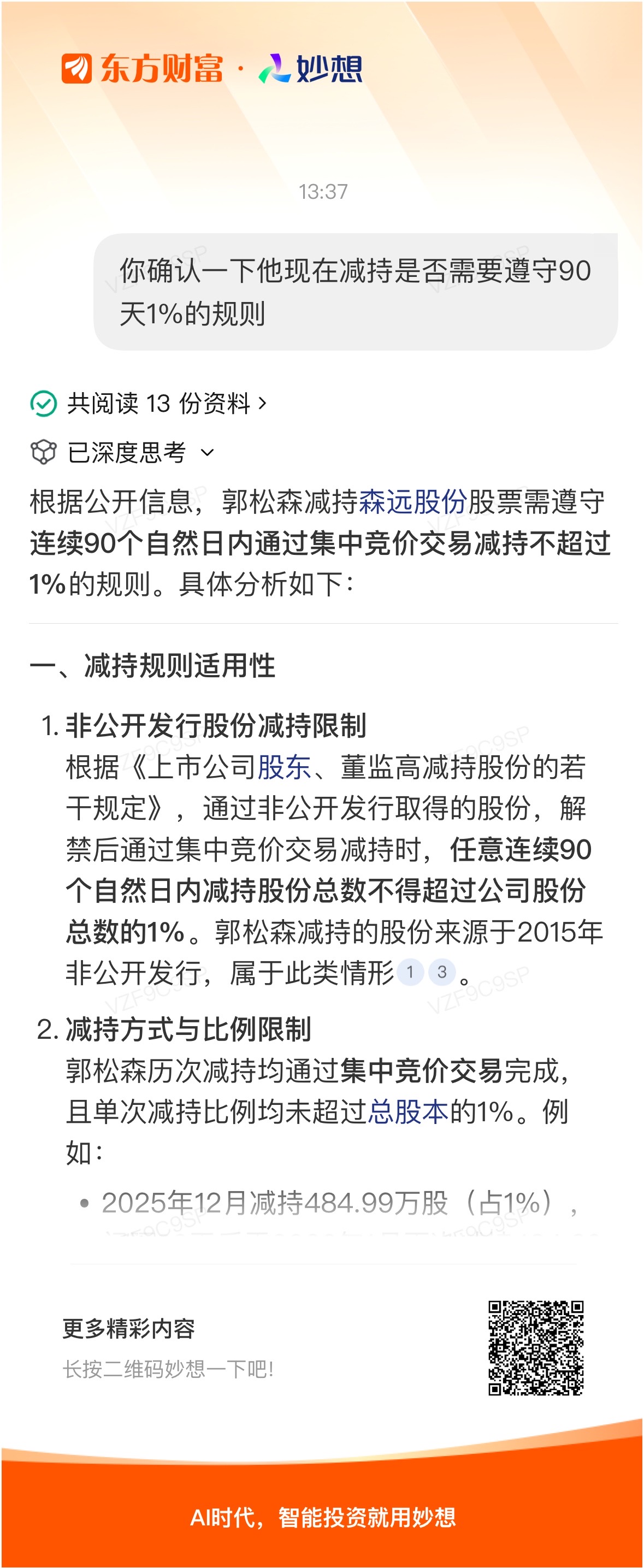妙想一下:你确认一下他现在减持是否需要遵守90天1%的规则