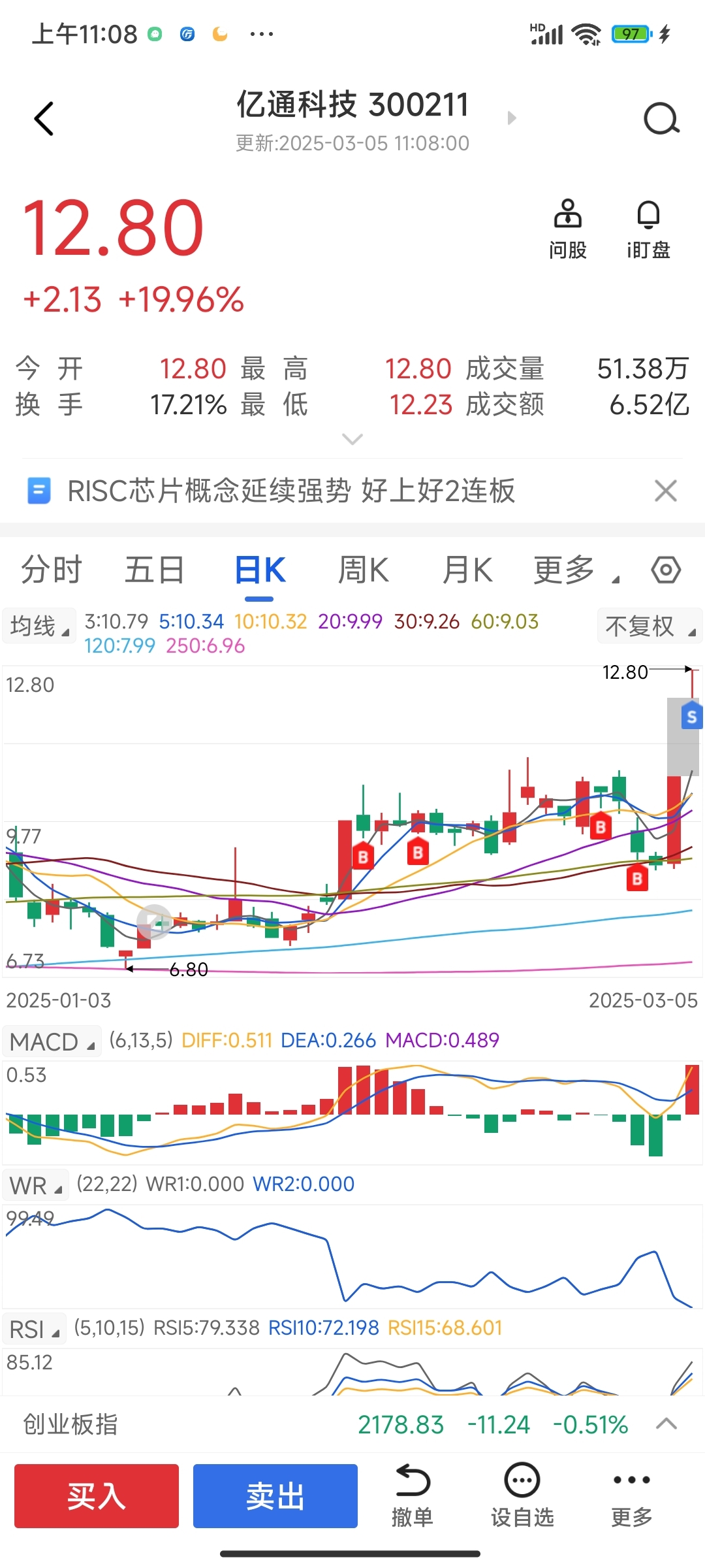 买了好久,终于收获两个涨停板。