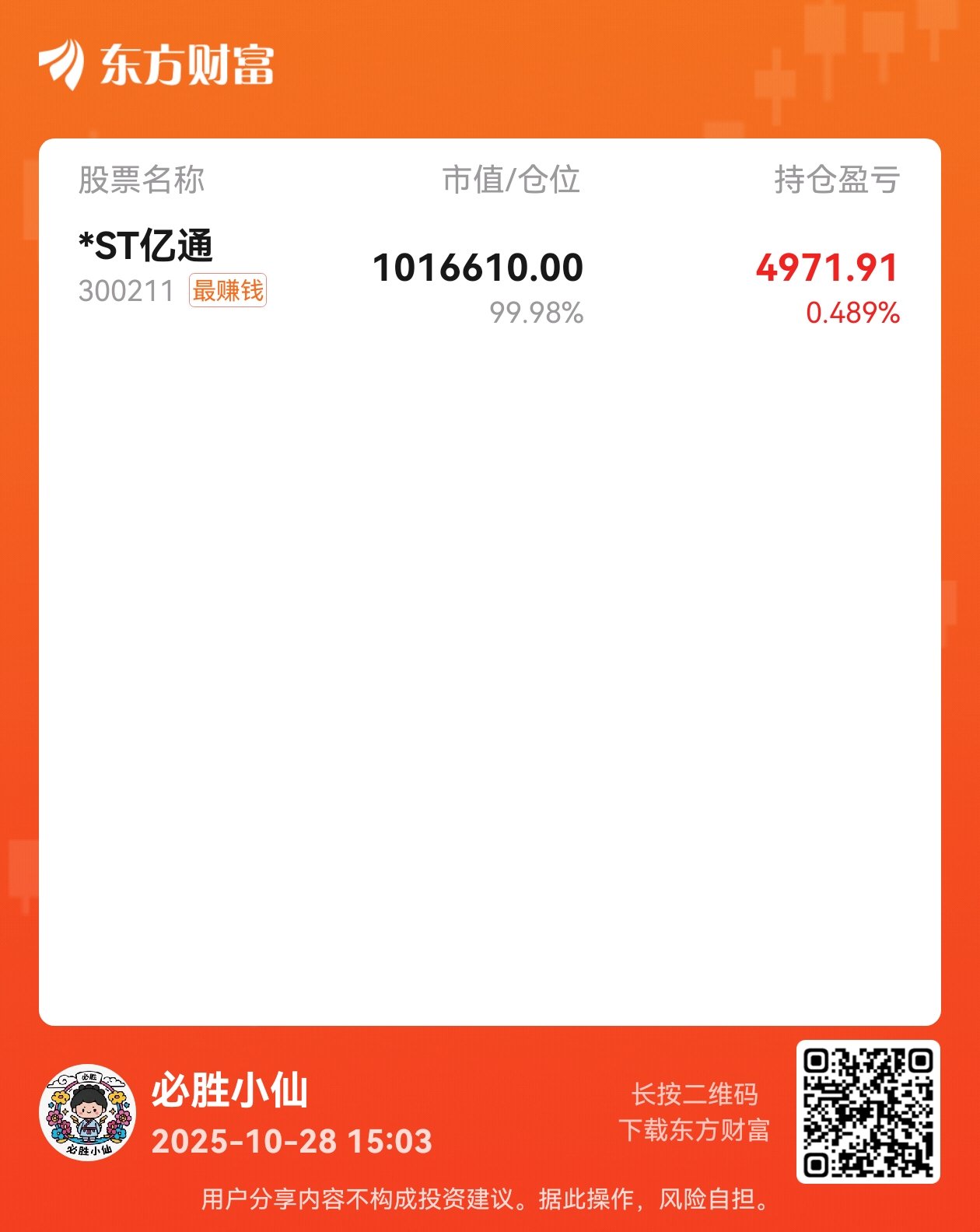 $*ST亿通(SZ300211)$ $ST股(BK0511)$ $上证指数(SH000001)$ 亲,上证轻轻的碰了4000,好像静悄悄地,又是输钱不输心情的一天,继续很好的,很好的,很好的。