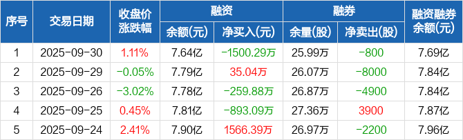 易华录:融资净偿还1500.29万元,融资余额7.64亿元(09-30)